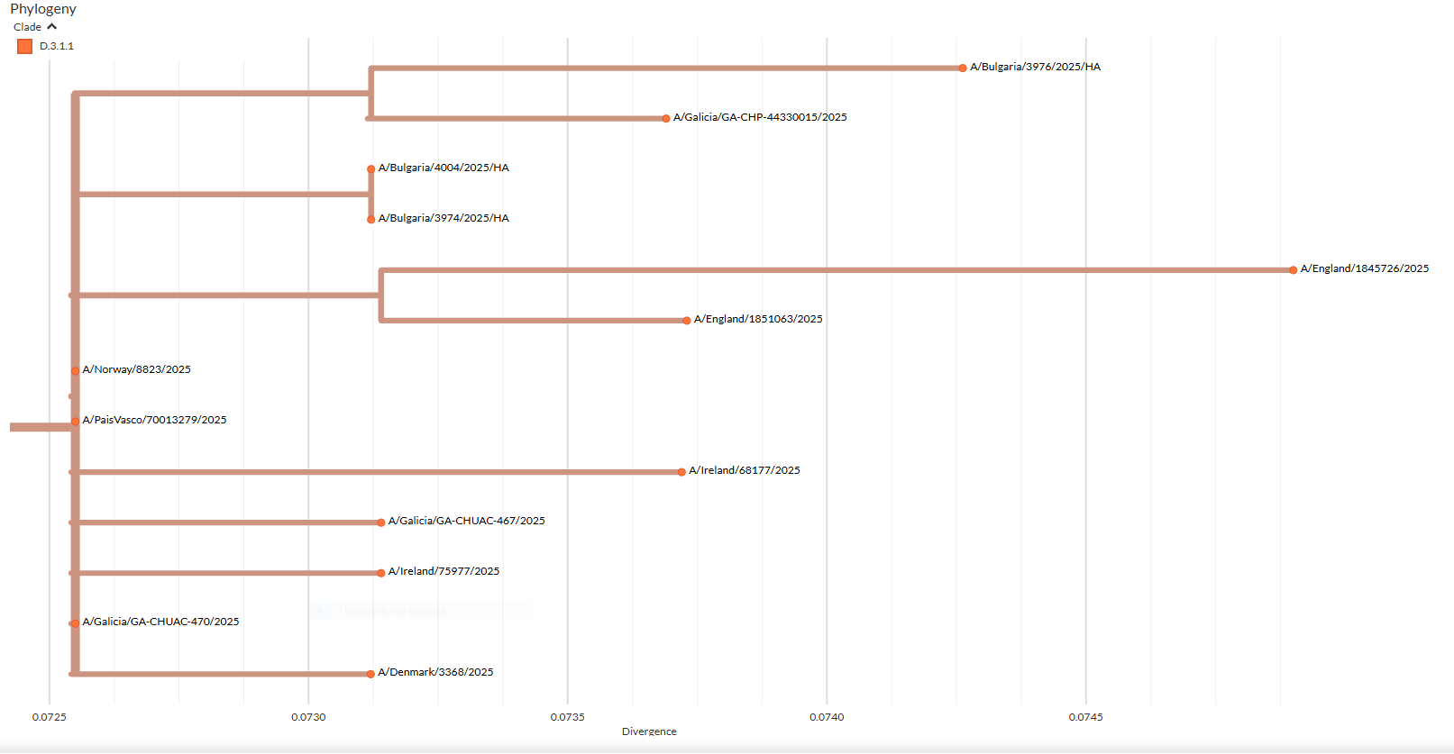 Окончателният анализ за дефиниране на вирусните варианти е извършен с помощта на програма Nextclade v.3.18.1